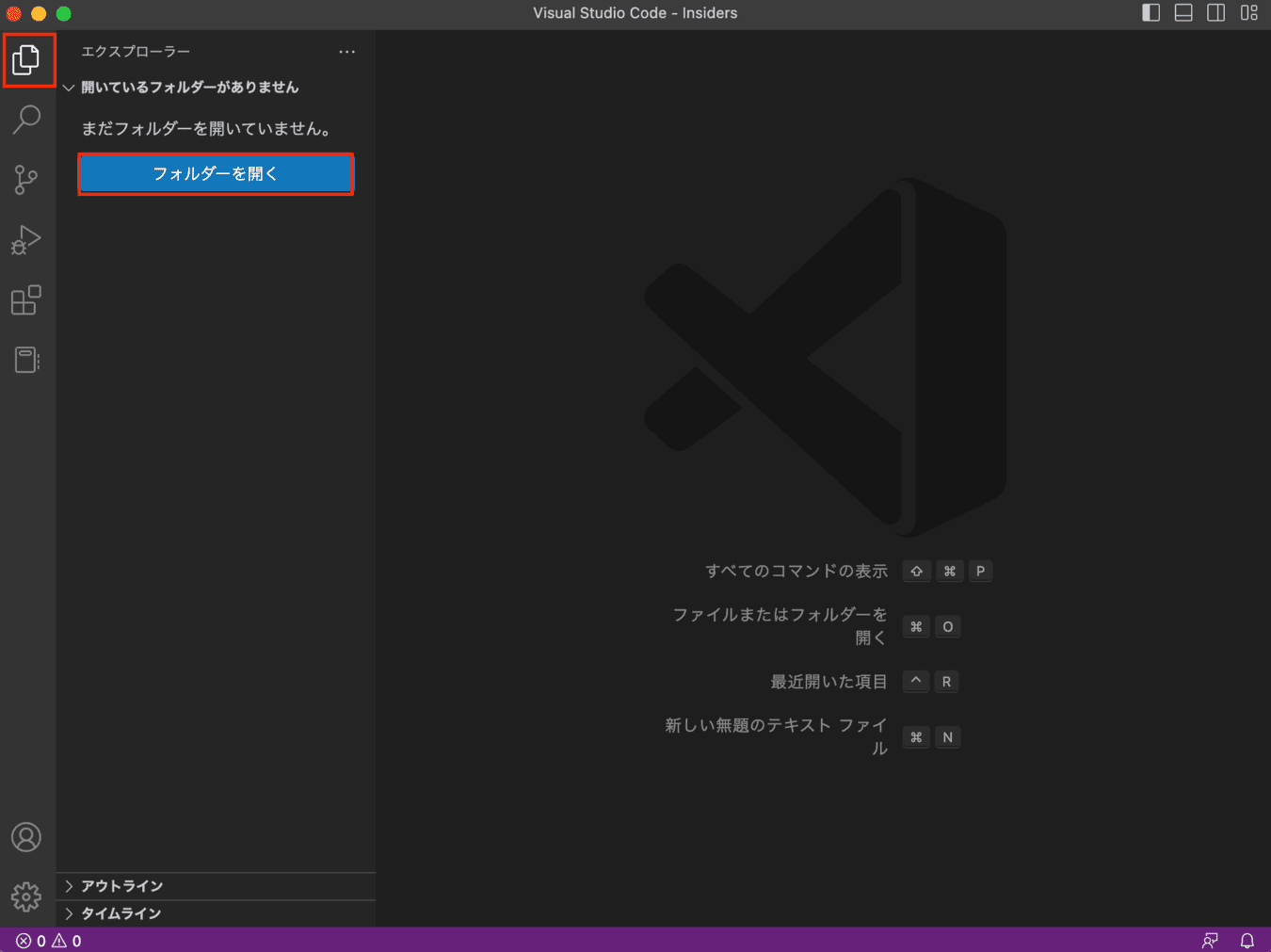 VSCodeを起動すると以下のような画面が表示されます。