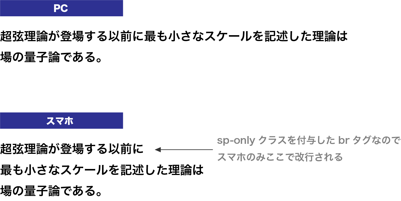 下記のようなsp-onlyクラスを定義しておくことで改行の有無を切り替えできます。