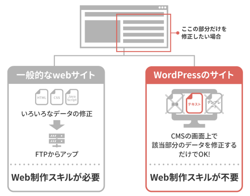 HTMLやCSSの知識がなくてもマウスとキーボード操作によりコンテンツの作成や編集が簡単に行えるメリットがあります。