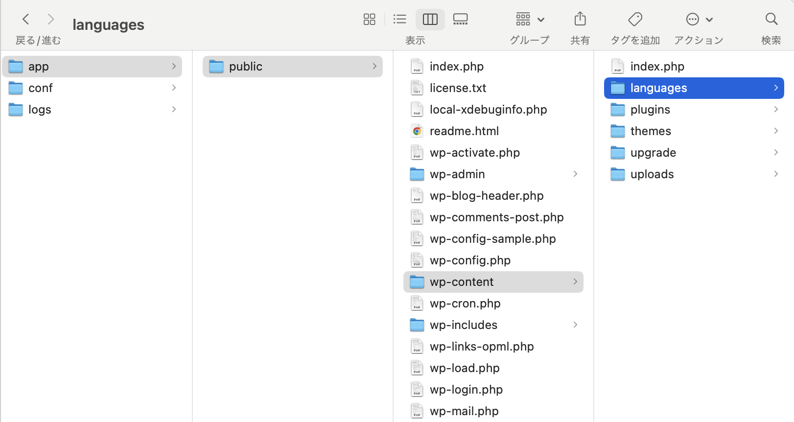 【app > public > wp-content】の直下にlanguagesフォルダを配置