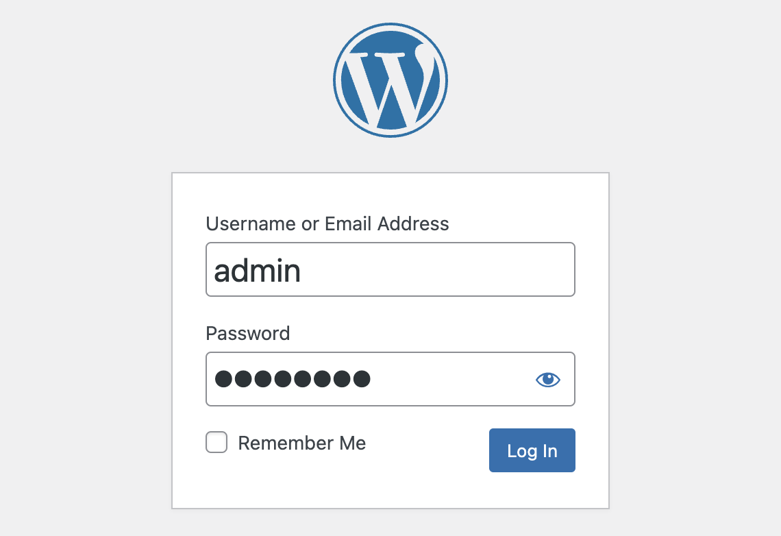 [WP Admin]ボタンを押して管理画面のログインページを開きます。