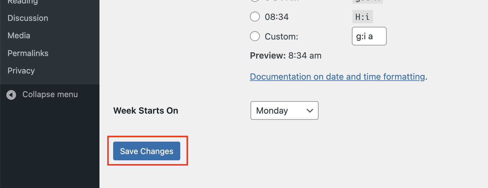 ページ下部にある[Save Changes]ボタンをクリックして、変更を確定後に管理画面全体がが日本語表示になっているのを確認します。