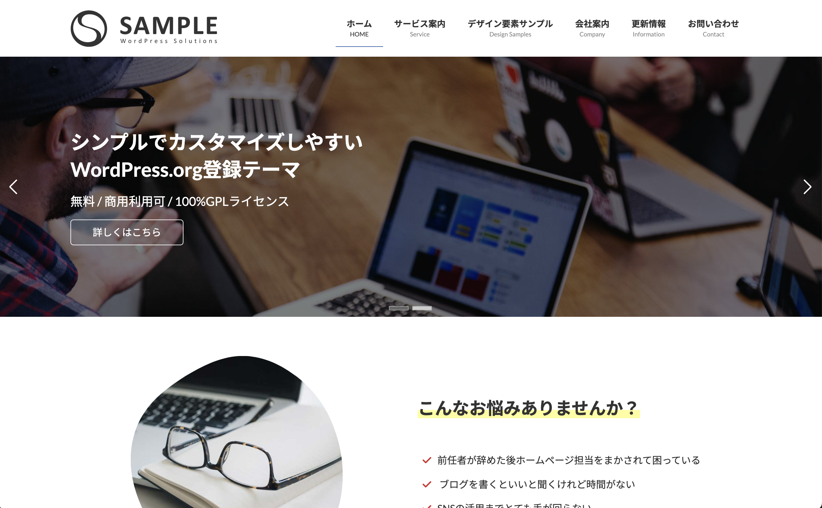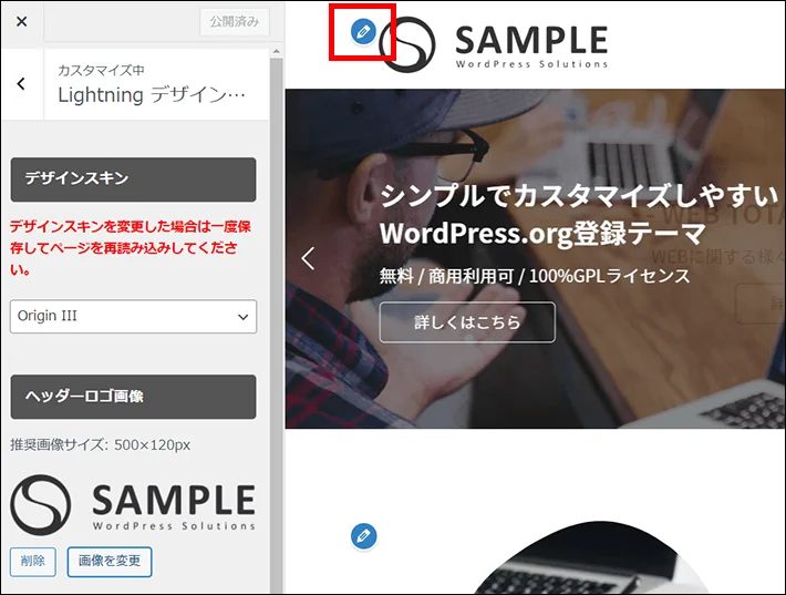 Lightningテーマを使うと簡単にビジネスサイトの雛形を作ることができます。