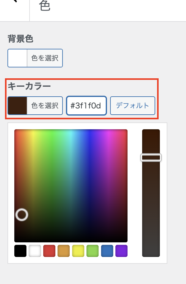 キーカラーに【#3f1f0d】を指定