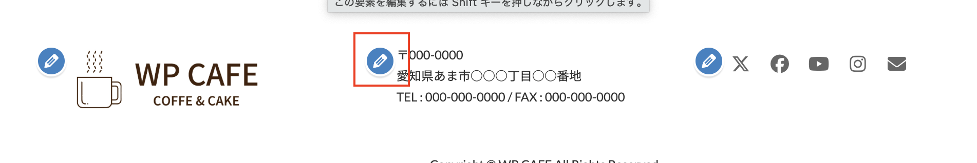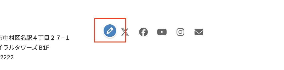 フッター部分にあるSNSの編集アイコンをクリック