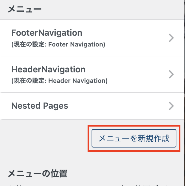 【メニューを新規作成】をクリック