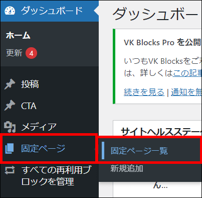 編集ページ:【固定ページ > 固定ページ一覧】