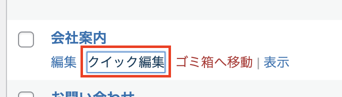 対象ページの【クイック編集】をクリックします。