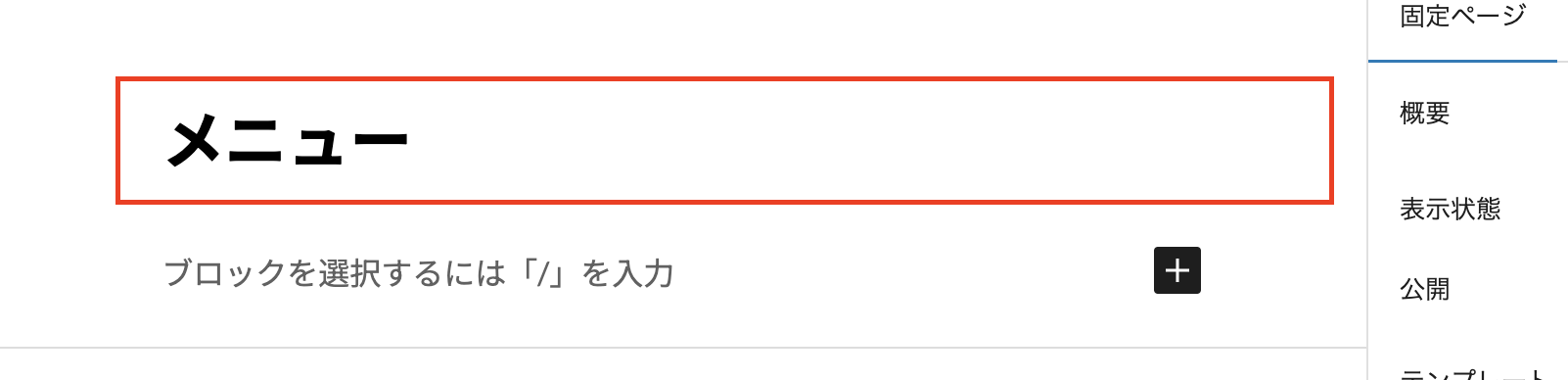ページタイトルを「メニュー」と入力します。