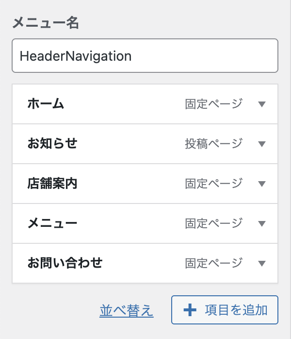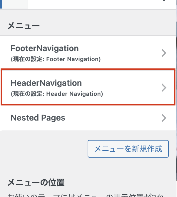 編集ページ:【外観 > カスタマイズ > メニュー > HeaderNavigation】