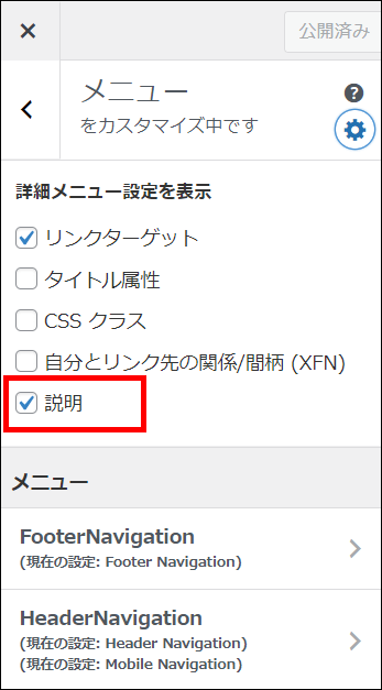 「メニューをカスタマイズ中です」の右にある歯車マークをクリックし、「説明」にチェックを入れると、表示されます。
