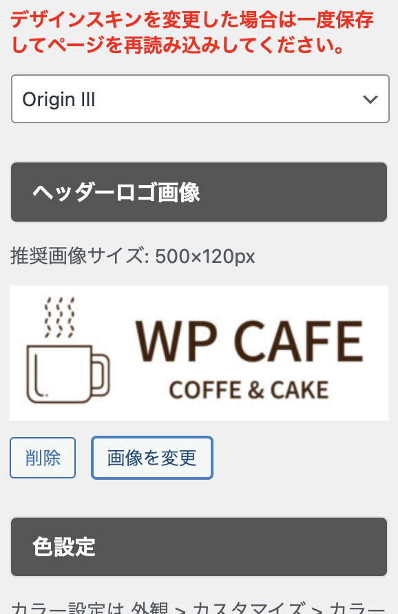 サイドメニューの【ヘッダーロゴ画像】から画像を編集
