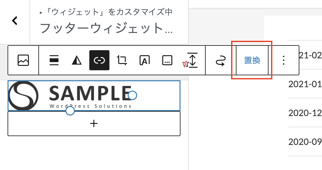 同様の手順でフッターにあるロゴも変更します。