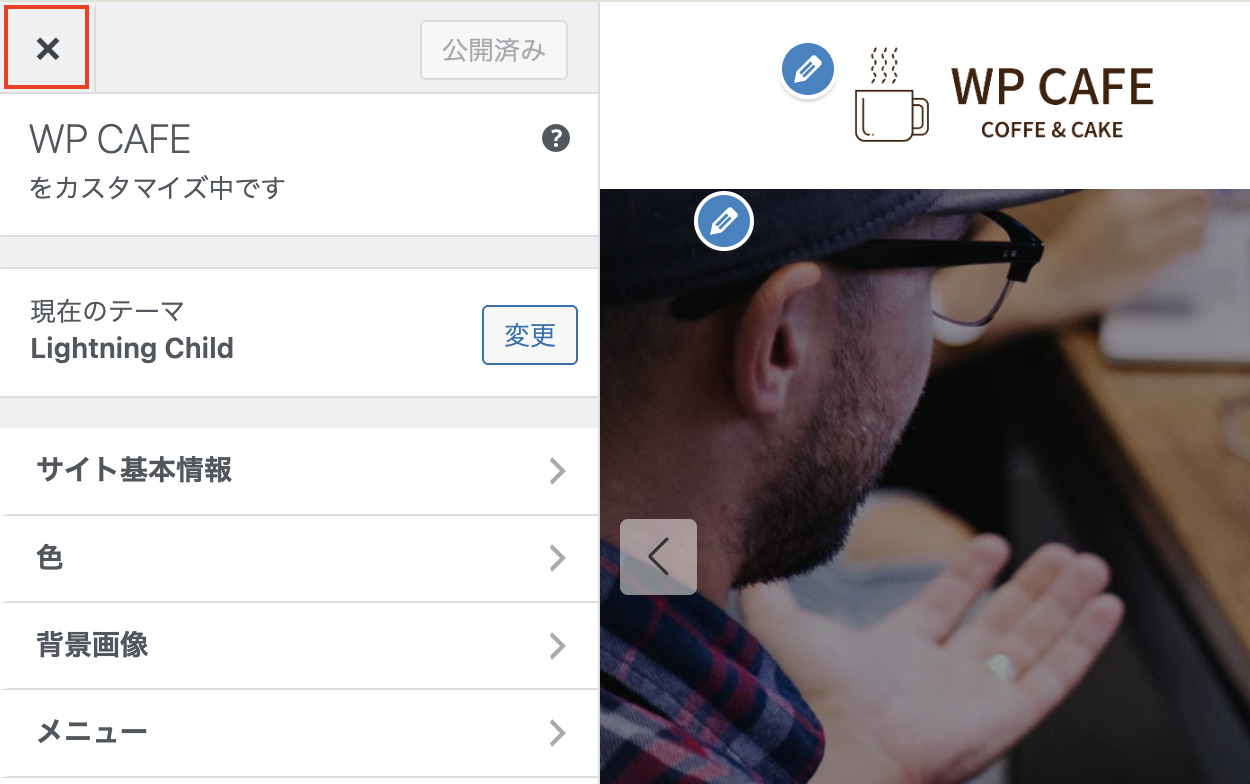ここまで出来たら[×]を押してカスタマイズモードを終了します。